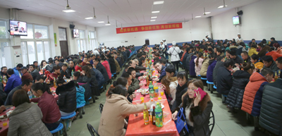 春節前夕,公司行政、工會經過摸底統計,共有600多名外地員工不回老家過春節,為了讓他們在公司也能度過一個快樂、祥和的春節,公司決定像往年一樣,為不回老家過春節的員工舉辦“同吃年夜飯,歡度春節”活動。同吃年夜飯期間,公司工會副主席高文生奔波公司南區、新區生產基地食堂,代表企業向每一位員工表達了新春的問候和祝福,對員工們為企業的不斷健康發展付出的辛勤勞動表達了感激之情。
