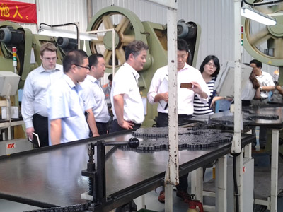 7月17日,豐田總部采購部負(fù)責(zé)人一行到東華生產(chǎn)現(xiàn)場參觀。傳動鏈?zhǔn)聵I(yè)部部長及技術(shù)質(zhì)量處負(fù)責(zé)人陪同參觀。