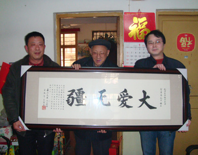 嘉興的民建會員付乃池老人70多歲了,以前患有嚴重的高血壓和哮喘病,家中經濟困難,無法有效醫(yī)治,有了東華的資助金,他積極進行治療,身體得到很好康復。看到慰問組的人員,他流下了感激的淚水,還特地做了一幅“大愛無疆”的匾額送給宣董事長。旁題:君以仁愛之長期結對幫扶眾人,慷慨解囊,人均年萬余元。吾乃耄耋之年,貧病交加,喜得先生資助,月月如是,年復一年,恰似春風甘露,老朽得以頤養(yǎng)天年,不勝感激,僅聊表寸心。表達了他的感激之情。