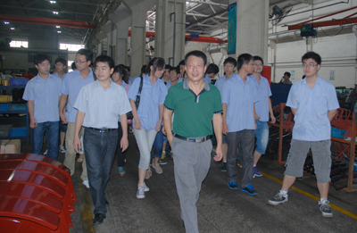 8月13日,由東華集團副總經理袁立華帶隊,東華近三年的30多名大學生到東風農機集團參觀。上午在東風農機集團副總經理金耀民、人力資源部部長龔建偉等領導的陪同下,參觀了東風農機中拖裝配、機三車間、齒輪車間、大拖車間、樣品展示廳等。下午舉行了座談會,東風農機總經理徐小林主持座談會,并向大家介紹了東風農機改制及發展情況。