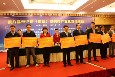 11月22日,在杭州召開的第八屆京滬杭(國際)高科技產業(yè)化交流活動會上,東華集團院士專家工作站順利通過2011年度杭州市院士專家工作站的考核,獲得50萬元獎勵,這是杭州市委組織部、市科協對東華院士專家工作站工作的充分肯定,董事長助理張世強參加會議并上臺領獎。