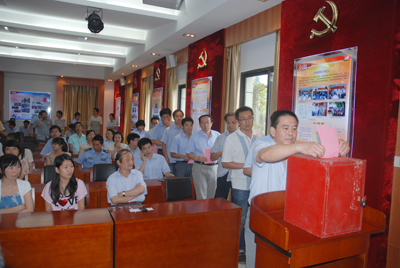 本屆黨委換屆選舉,除出國(guó)、工作調(diào)動(dòng)及生病外,到會(huì)參與選舉的正式黨員共65名。經(jīng)過廣大黨員嚴(yán)肅認(rèn)真的無記名選舉、投票、監(jiān)票、唱票等公平公正的選舉程序。魯小林同志高票當(dāng)選本屆黨委書記。徐美珍、廖杭州、趙鵬飛、 蔣錫林當(dāng)選為黨委委員。