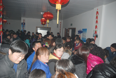 今年的“鬧元宵”游園節目豐富多彩,既有傳統的猜謎語、釣魚、看字表演活動,也有投羽毛球、吹乒乓球等新式活動,這些活動全部由各分工會設計、承辦。每個小節目都有禮品送,十多個節目玩下來,有些員工手上拿滿了禮品,再去抽獎。今年的獎品豐富,有MP5、電飯煲、床上用品、吹風機、洗發水等等。現場擠滿了游園的員工及家屬,尤其是孩子們臉上堆滿了笑容,大人、孩子都爭先恐后地去搶著玩游戲,好不熱鬧。