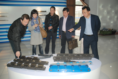 3月16日,江干區(qū)工商聯(lián)新任主席李紅、黨組書記姚家岐、副主席張俊標(biāo)、陳福臣一行到東華集團(tuán)調(diào)研東華集團(tuán)搬遷后的發(fā)展形勢(shì)。董事長宣碧華、副總經(jīng)理張寶康熱情地接待了調(diào)研組。會(huì)上,宣董事長向調(diào)研組匯報(bào)了東華集團(tuán)搬遷一年多來的發(fā)展形勢(shì)。調(diào)研組成員對(duì)宣董事長任江干區(qū)工商聯(lián)主席期間對(duì)區(qū)工商聯(lián)所作的貢獻(xiàn)表示感謝,對(duì)東華集團(tuán)搬遷到余杭區(qū)來所取得的成績給予了肯定。圖為張寶康副總陪同調(diào)研組參觀產(chǎn)品陳列室。