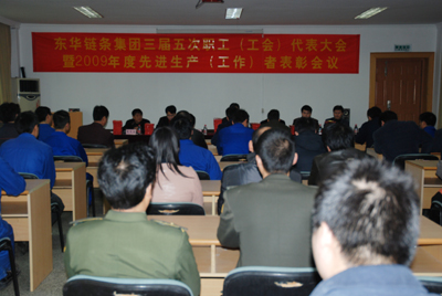 3月1日,東華集團召開三屆五次職工(工會)代表大會暨2009年度先進生產(工作)者表彰會議??偨浝韽埵缽?;副總經理廖杭州、袁立華;財務總監趙鵬飛;董事宣志榮;工會主席魯小林等高層、優秀中層、崗位標兵、先進(生產)工作者代表等80多人參加會議。