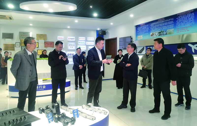 在東華鏈條展廳,調(diào)研組觀看了企業(yè)宣傳片,并參觀了配套于各行業(yè)的高端鏈傳動(dòng)產(chǎn)品。宣成向調(diào)研組詳細(xì)介紹了東華鏈條的全球研發(fā)制造布局、國(guó)內(nèi)外市場(chǎng)拓展、智能制造、精細(xì)化管理、人才隊(duì)伍建設(shè)以及未來發(fā)展規(guī)劃。