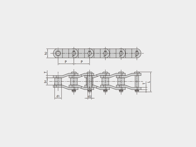 ● 重載傳動用彎板滾子鏈符合ISO 3512、ASME B29.10、DIN 8182等標準。