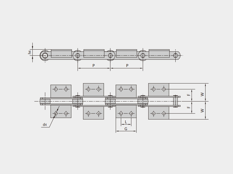 ● FV系列輸送鏈是指鏈條節距為公制整數(節距范圍40mm~500mm的多種節距)的滾子鏈或套筒鏈,滾子有多種結構形式,根據使用工況配置各種附件。