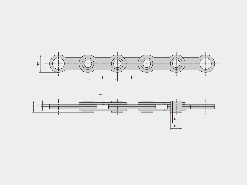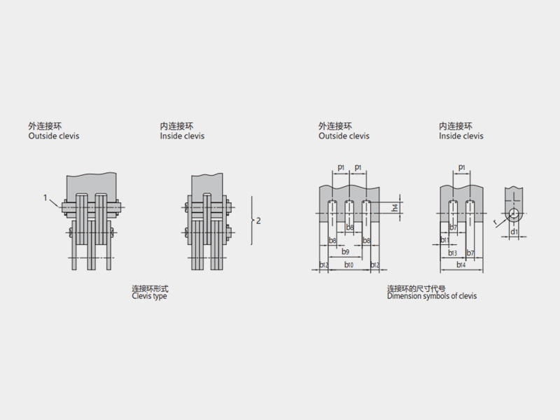 ● 板式鏈符合ISO 4347、ASME B29.8M、JIS B 1804等標準,主要有LH(BL)系列、LL系列和AL系列,以及由標準系列衍生的其它鏈號的板式鏈,節距范圍5.94mm~76.2mm,可根據主機用戶的特殊要求進行非標定制,并可配套供應各種類型連接環(端接頭)、特殊連接件等附件;